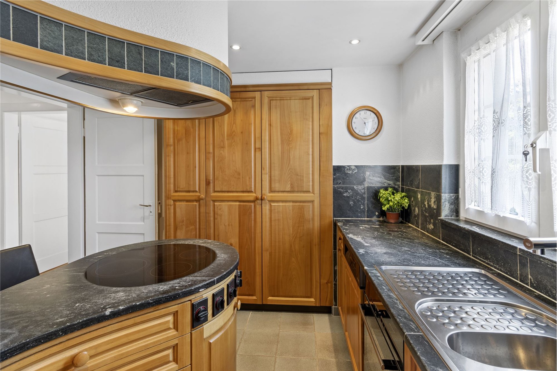 Im Untergeschoss offenbart das Haus zusätzliche Qualitäten: Neben dem stimmungsvollen Naturkeller stehen eine helle Waschküche und der Heizraum zur Verfügung. Die grosszügige Garage mit elektrischem Garagentor bietet direkten, trockenen Zugang ins Haus – ein Komfort, den man schnell nicht mehr missen möchte.