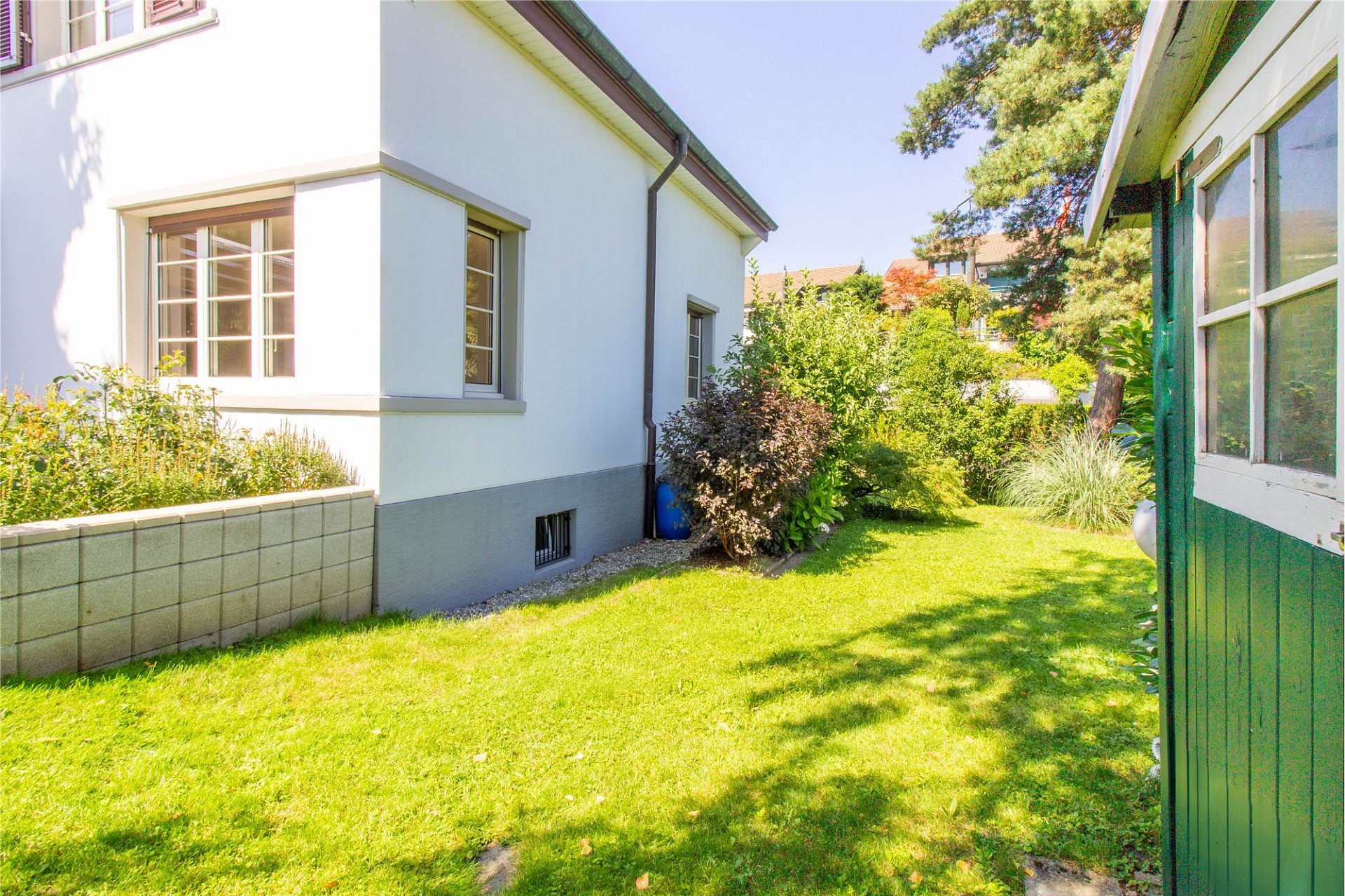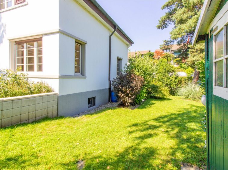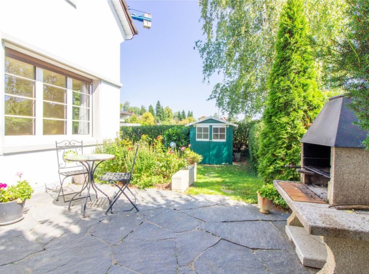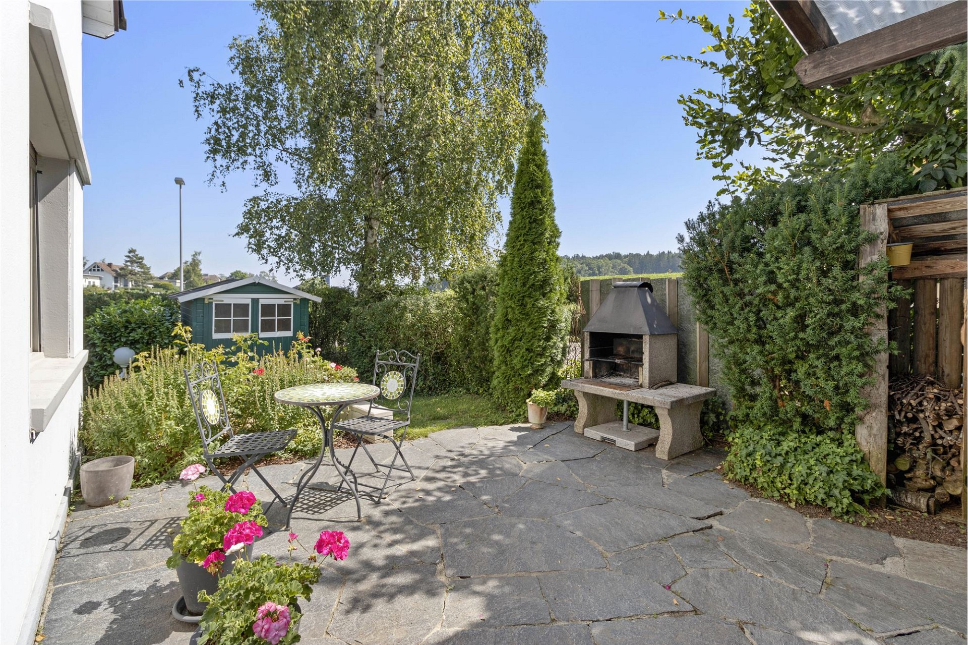 Bereits beim Ankommen öffnet sich der Blick auf eine schöne, grosszügige Gartenanlage, die direkt an die Reservezone grenzt – Natur pur mit Wald, Feldern und Wiesen in unmittelbarer Nähe. Der sonnige, ruhige Garten bietet Morgen- und Abendsonne, einen gemütlichen Gartensitzplatz mit Aussengrill sowie ein praktisches Gartenhaus; hier finden Alltag, Erholung und gesellige Stunden im Freien ihren perfekten Rahmen.