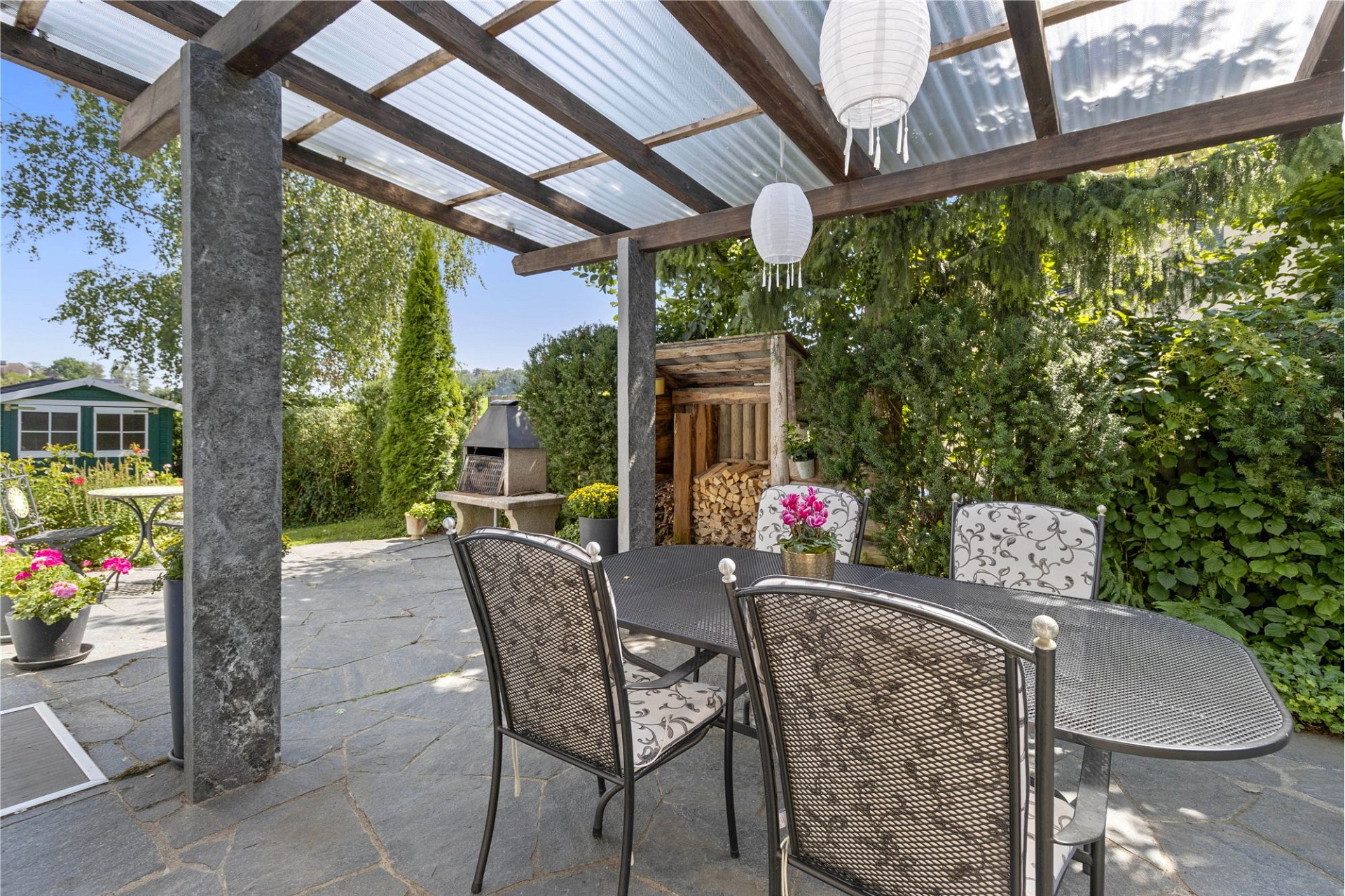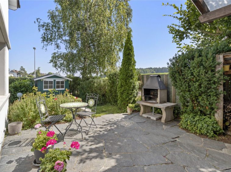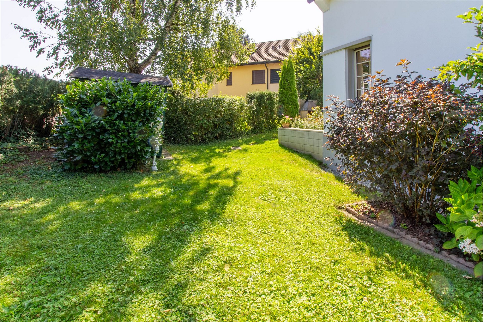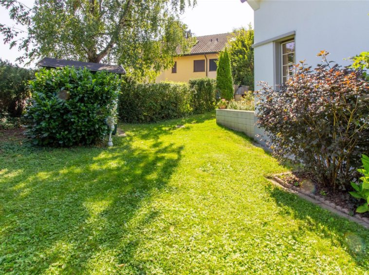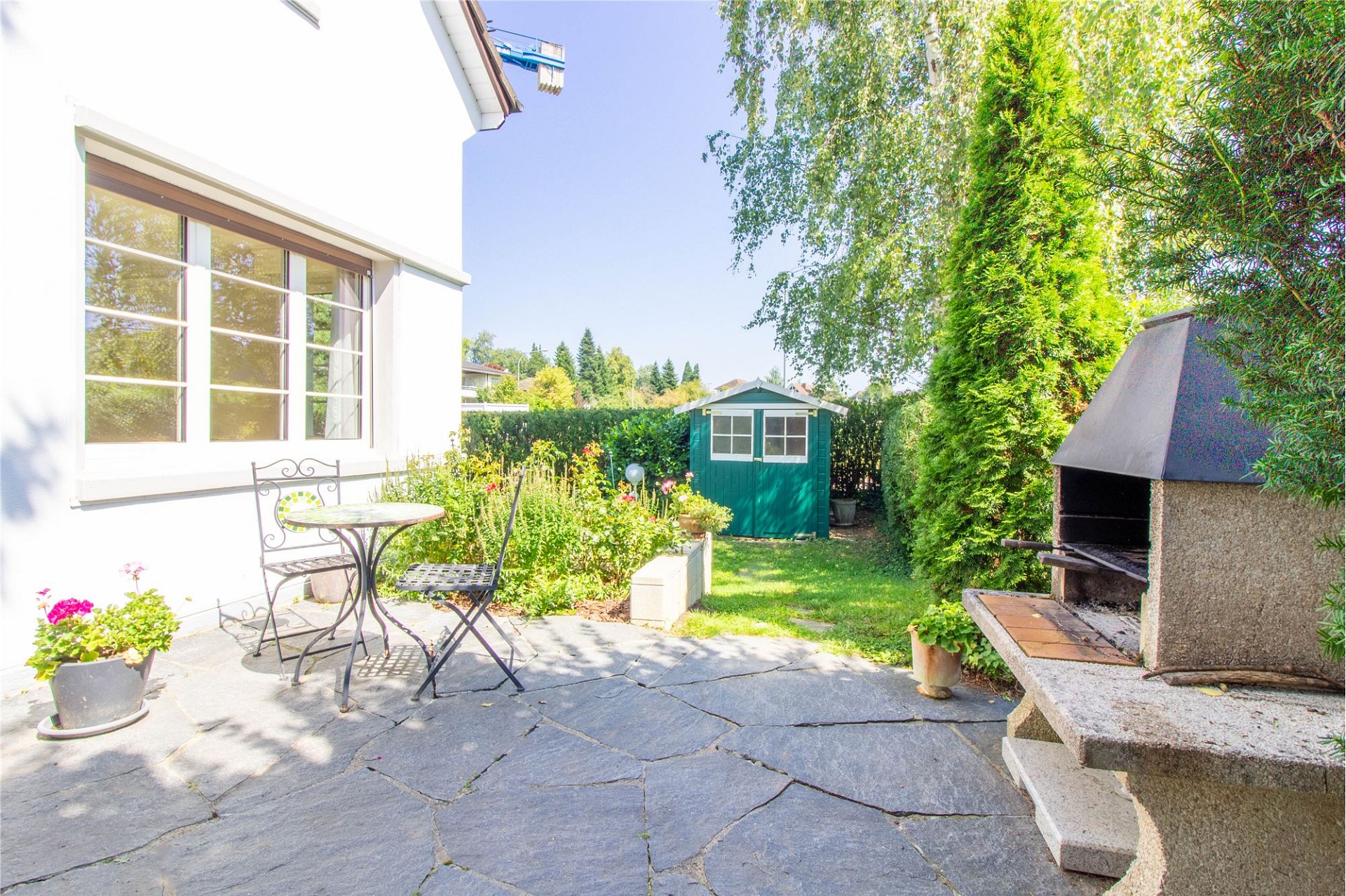 Bereits beim Ankommen öffnet sich der Blick auf eine schöne, grosszügige Gartenanlage, die direkt an die Reservezone grenzt – Natur pur mit Wald, Feldern und Wiesen in unmittelbarer Nähe. Der sonnige, ruhige Garten bietet Morgen- und Abendsonne, einen gemütlichen Gartensitzplatz mit Aussengrill sowie ein praktisches Gartenhaus; hier finden Alltag, Erholung und gesellige Stunden im Freien ihren perfekten Rahmen.