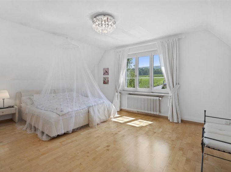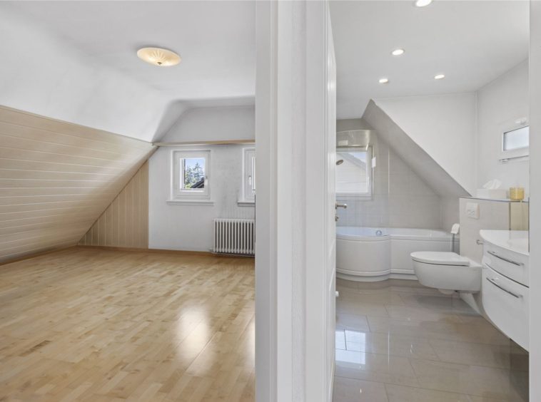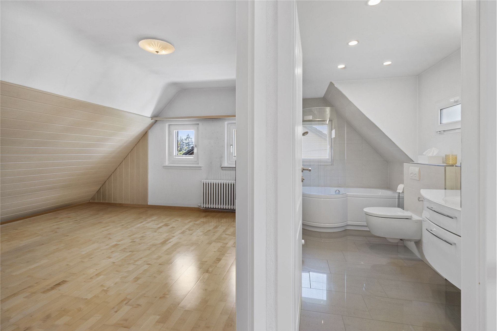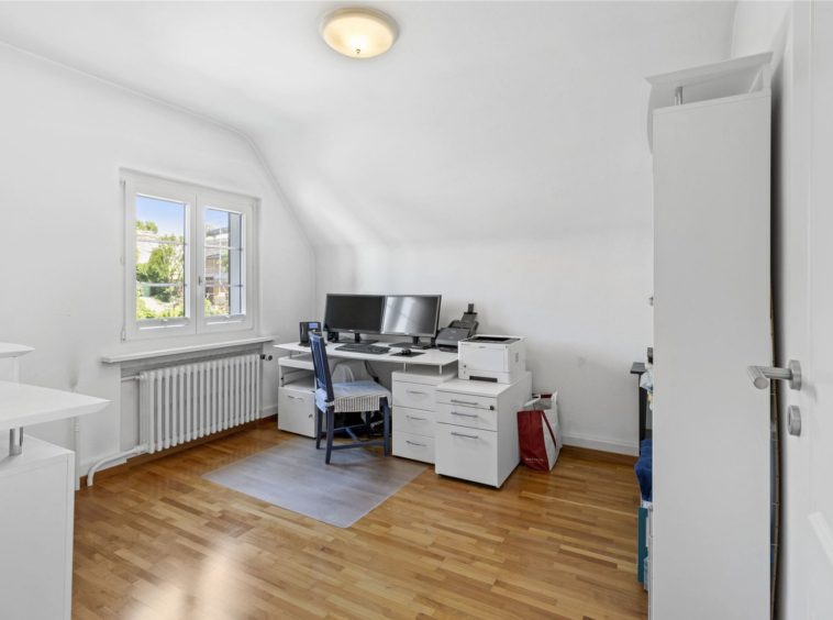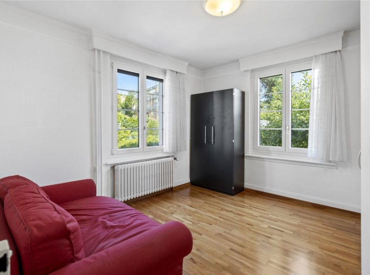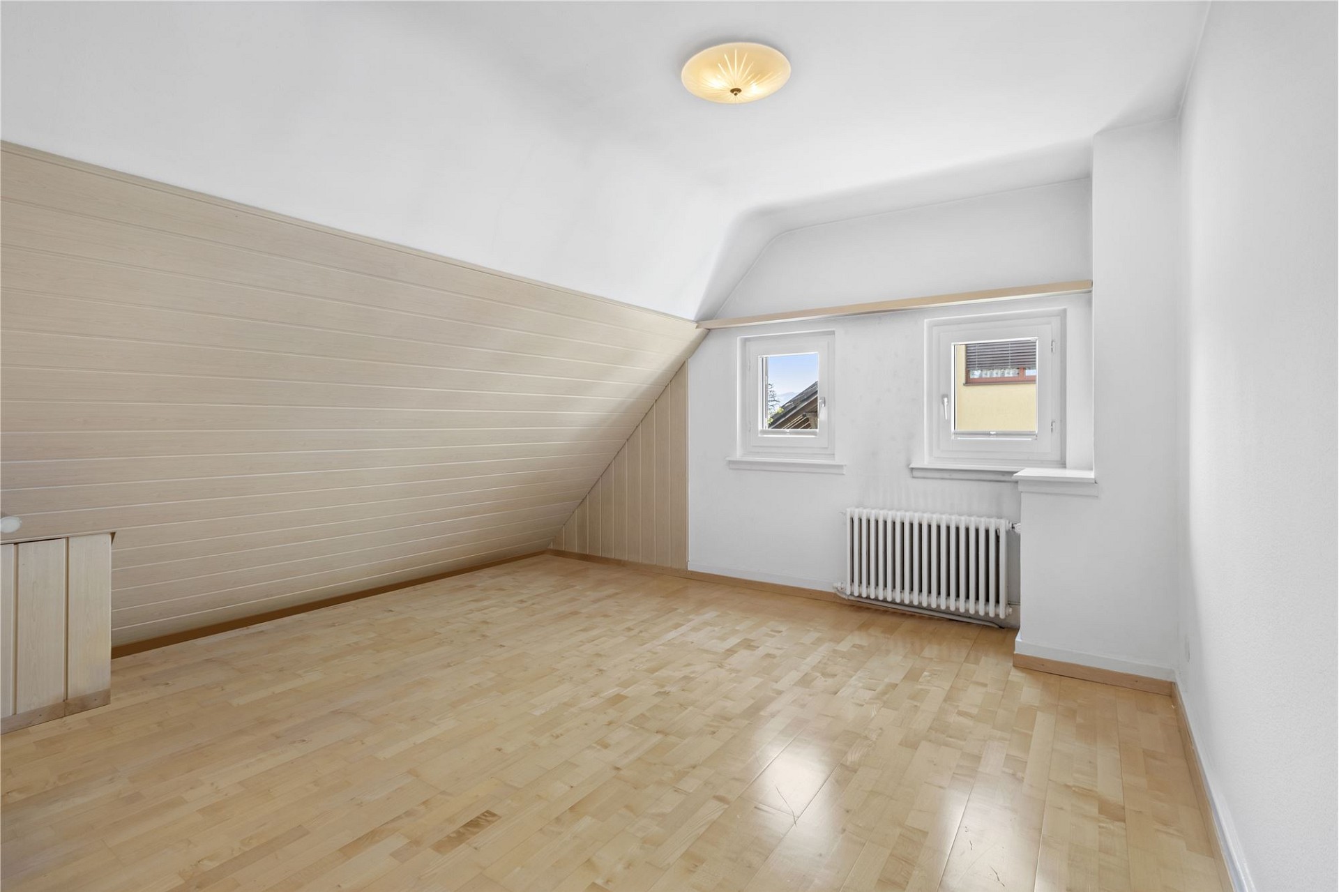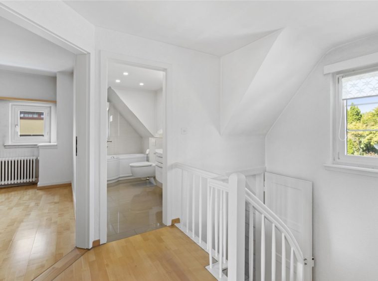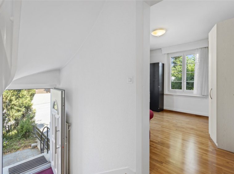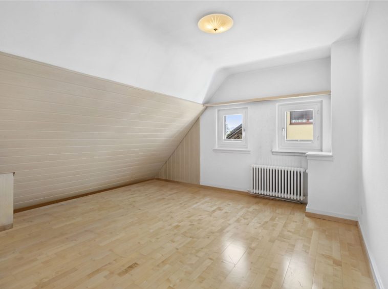 Das Obergeschoss beherbergt drei gut proportionierte Zimmer, die sich als Schlaf-, Kinder- oder Arbeitszimmer anbieten, alle Zimmertüren auf dieser Etage wurden erneuert und die klassischen Läden zum Abdunkeln sorgen für erholsame Nächte. Die Nasszelle überzeugt mit Bad, Dusche und WC sowie pflegeleichten Bodenplatten – ein zeitloser, gepflegter Auftritt, der den Alltag erleichtert.
