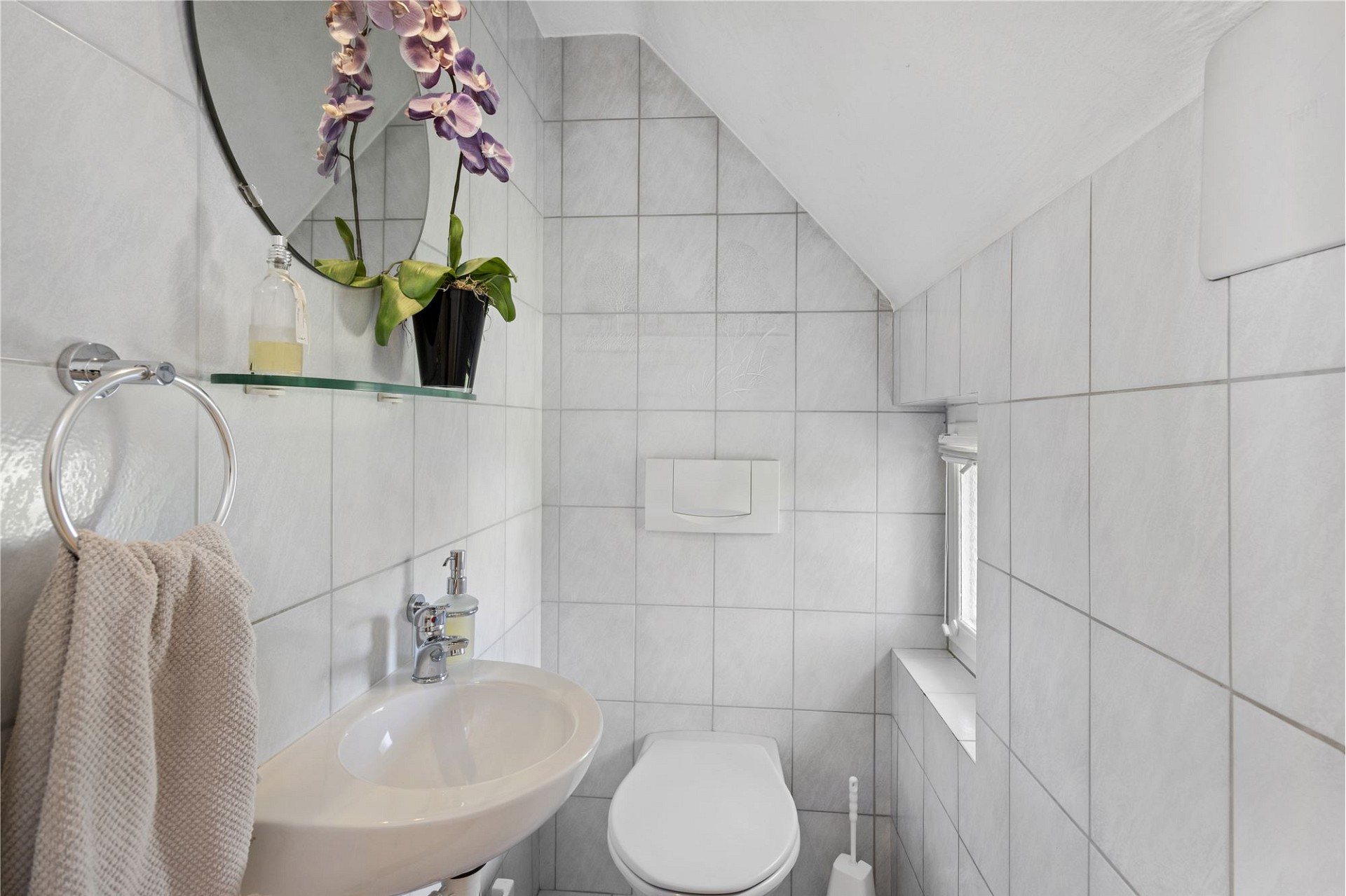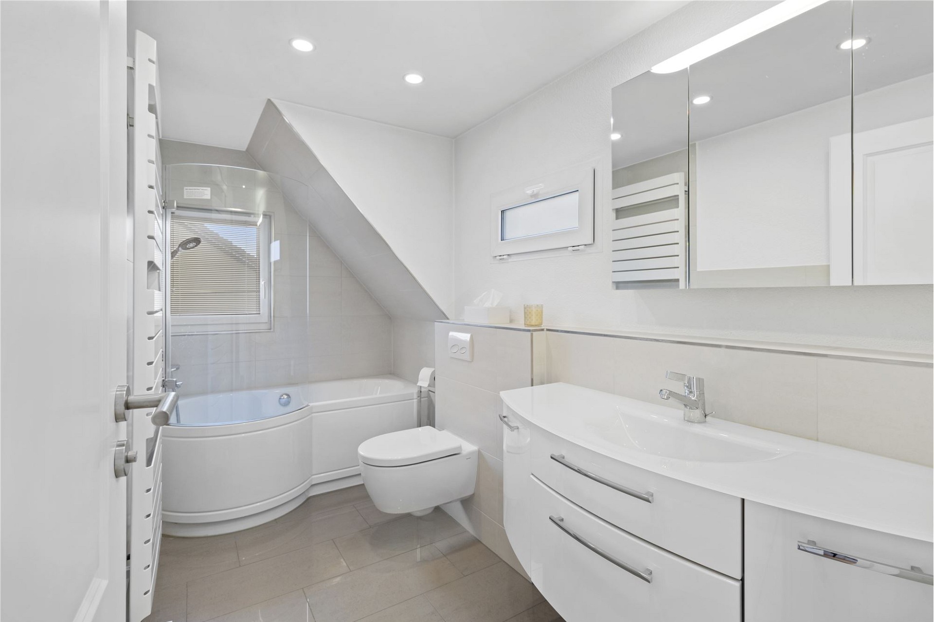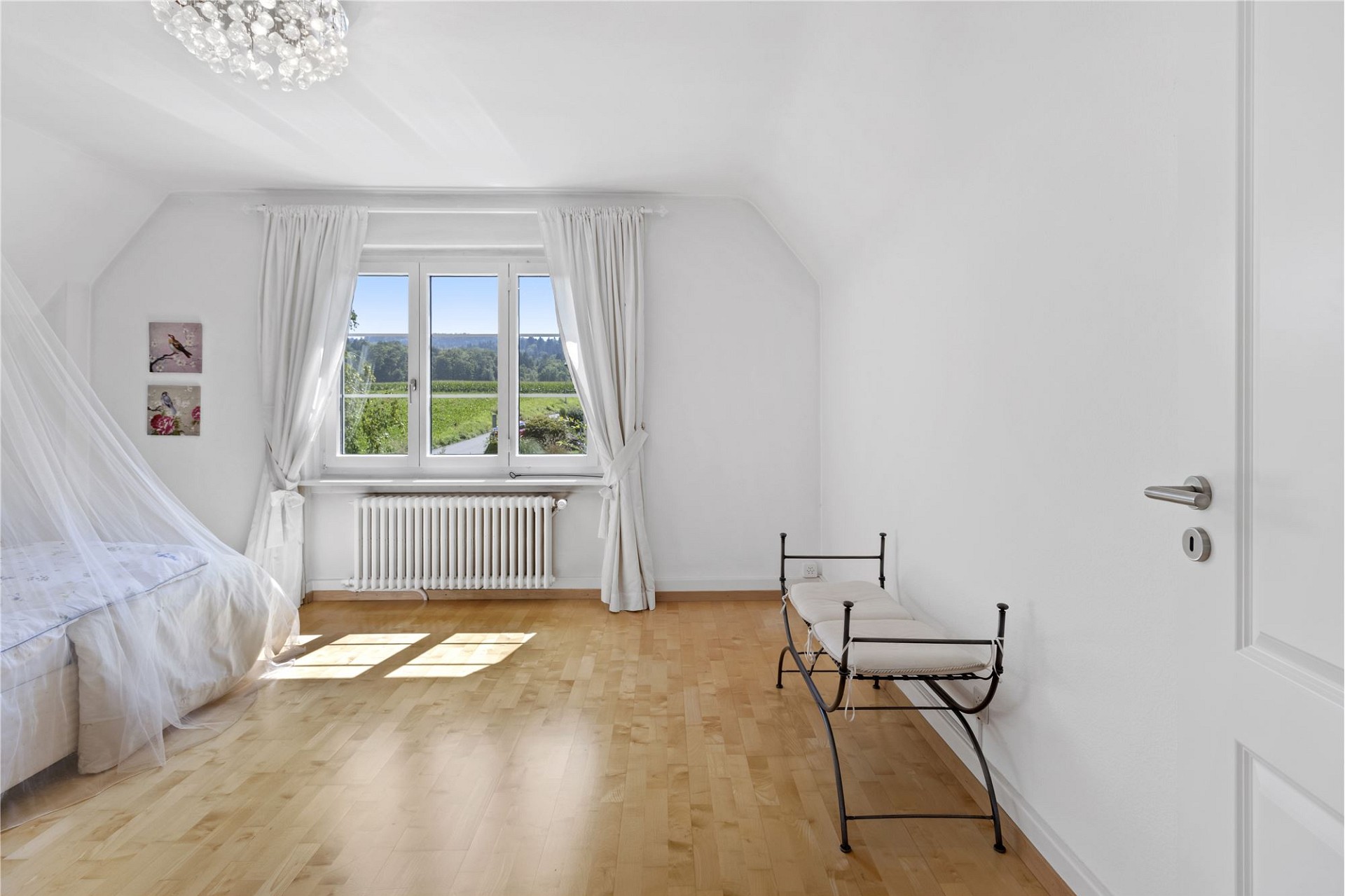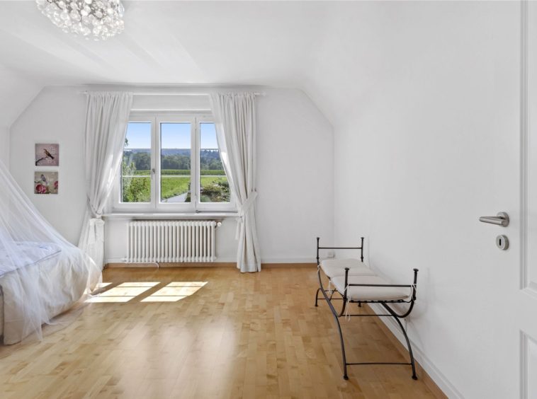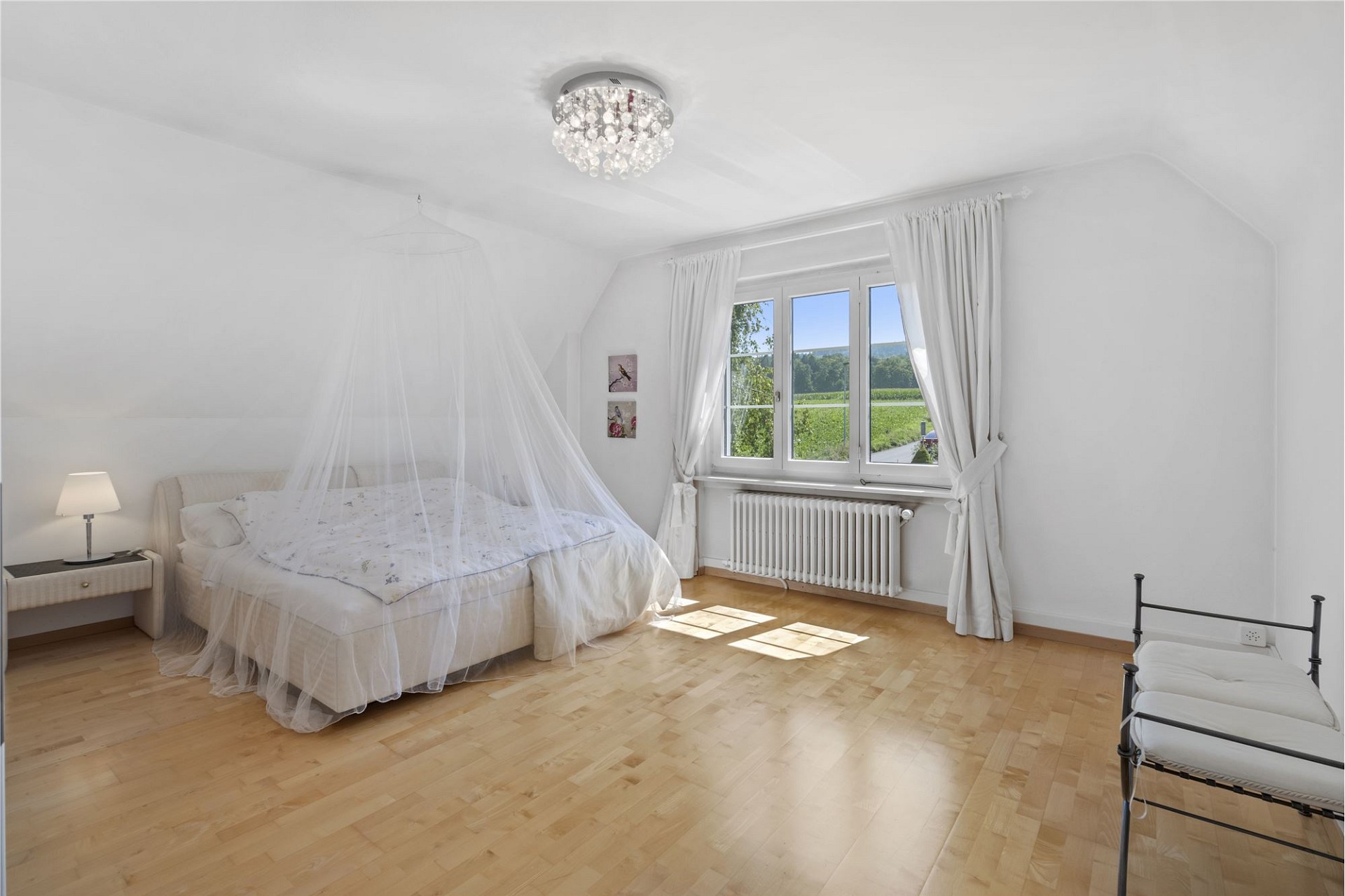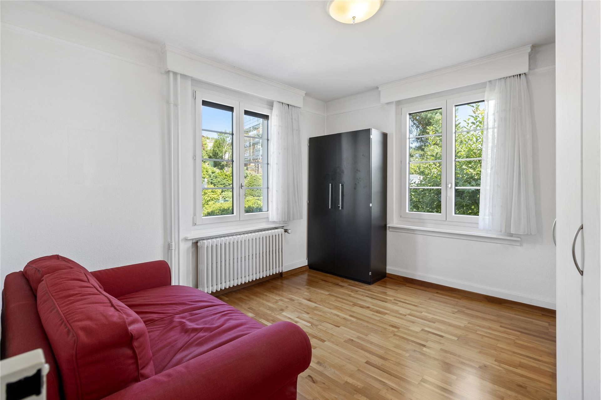Das Obergeschoss beherbergt drei gut proportionierte Zimmer, die sich als Schlaf-, Kinder- oder Arbeitszimmer anbieten, alle Zimmertüren auf dieser Etage wurden erneuert und die klassischen Läden zum Abdunkeln sorgen für erholsame Nächte. Die Nasszelle überzeugt mit Bad, Dusche und WC sowie pflegeleichten Bodenplatten – ein zeitloser, gepflegter Auftritt, der den Alltag erleichtert.