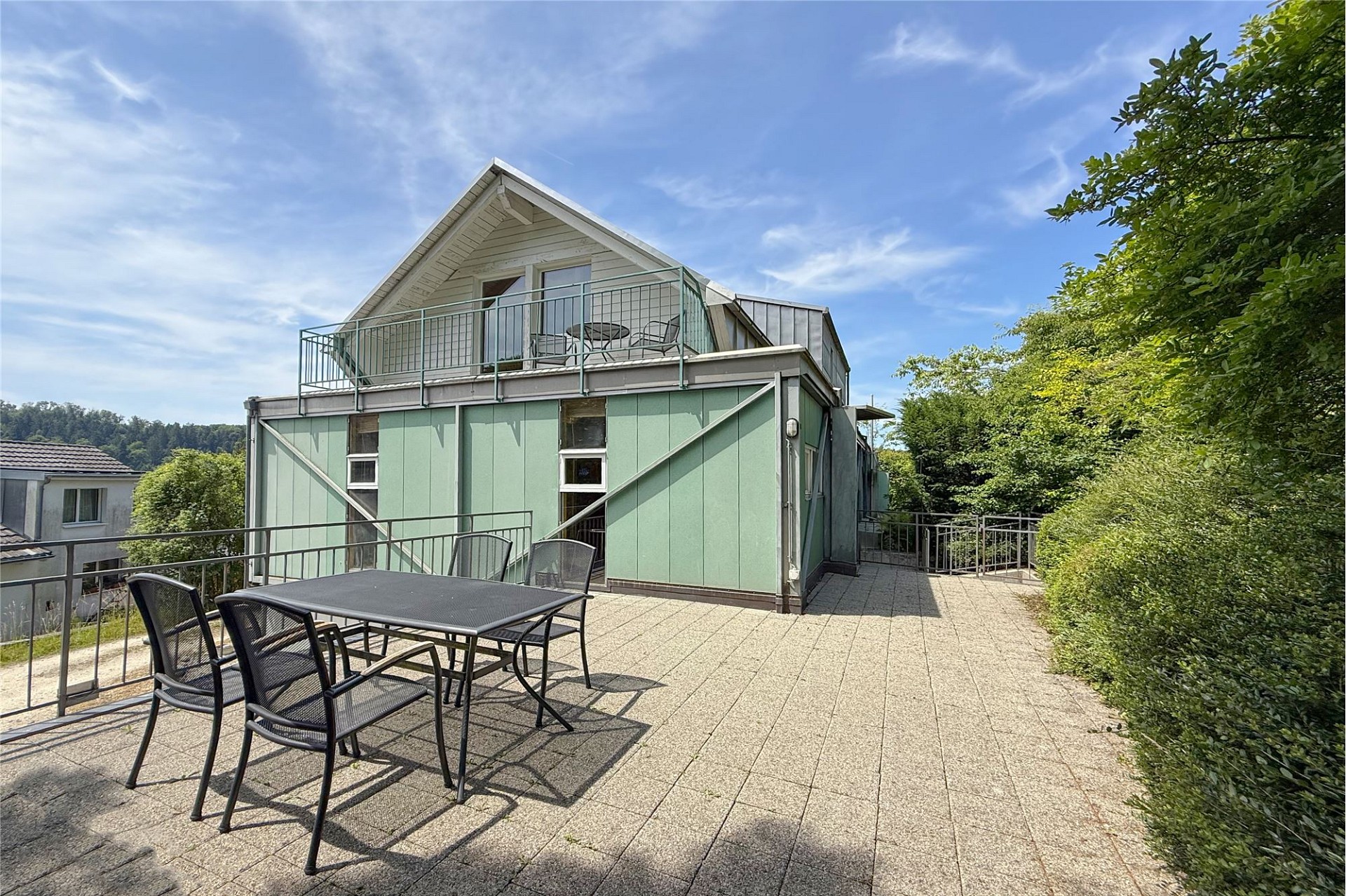 Dieses ausergewöhnliche Doppeleinfamilienhaus befindet sich an sonniger Hanglage in einem ruhigen, familienfreundlichen Einfamilienhausquartier nahe dem Waldrand. Die naturnahe Umgebung, die herrliche Aussicht auf die Berge und die durchdachte Raumaufteilung machen diese Liegenschaft zu einem idealen Zuhause für Familien, Mehrgenerationenwohnen oder Menschen mit dem Wunsch nach Flexibilität.