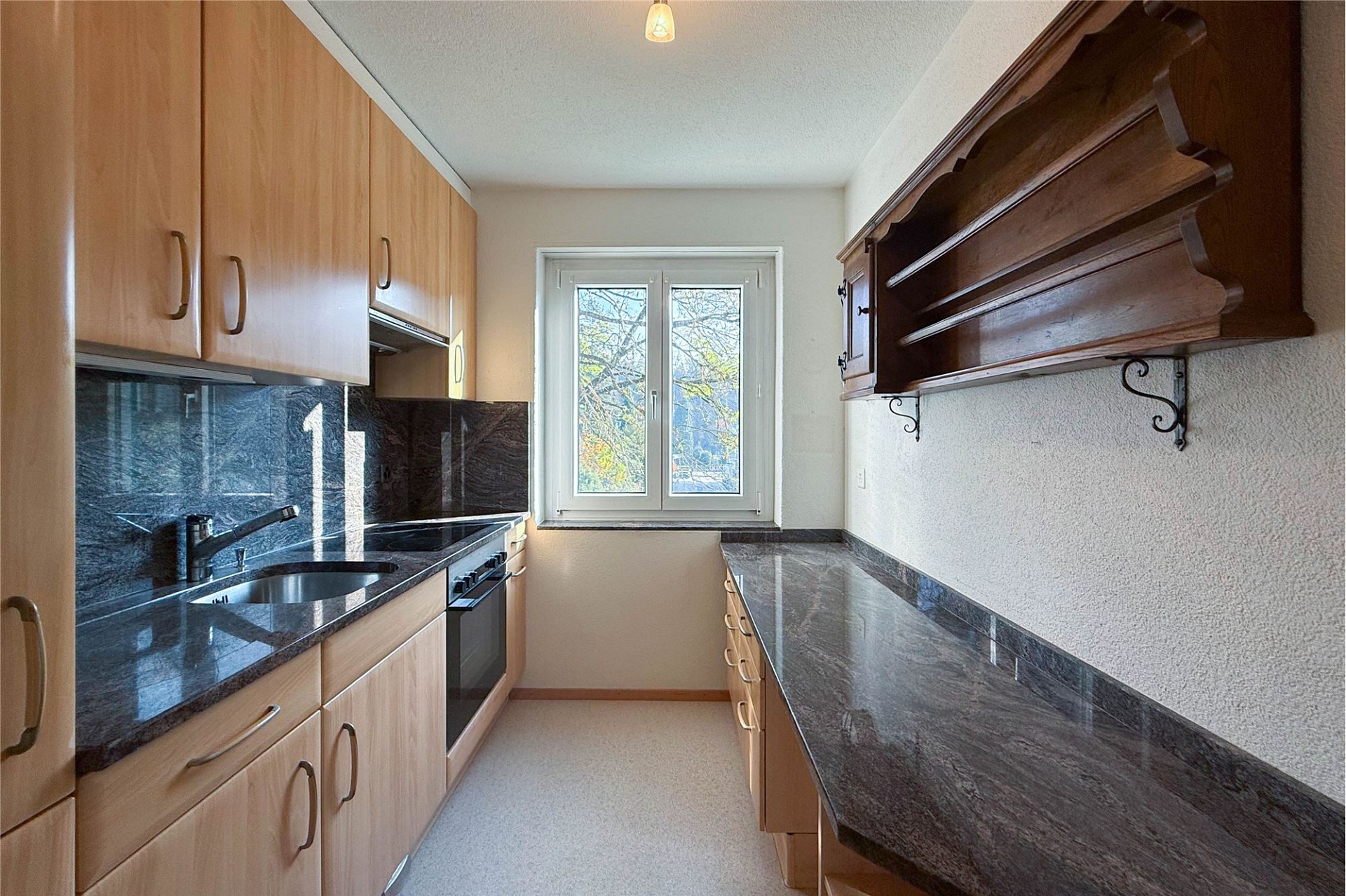 Die Küche ist mit einer eleganten Granitabdeckung und modernen V-ZUG-Geräten ausgestattet.