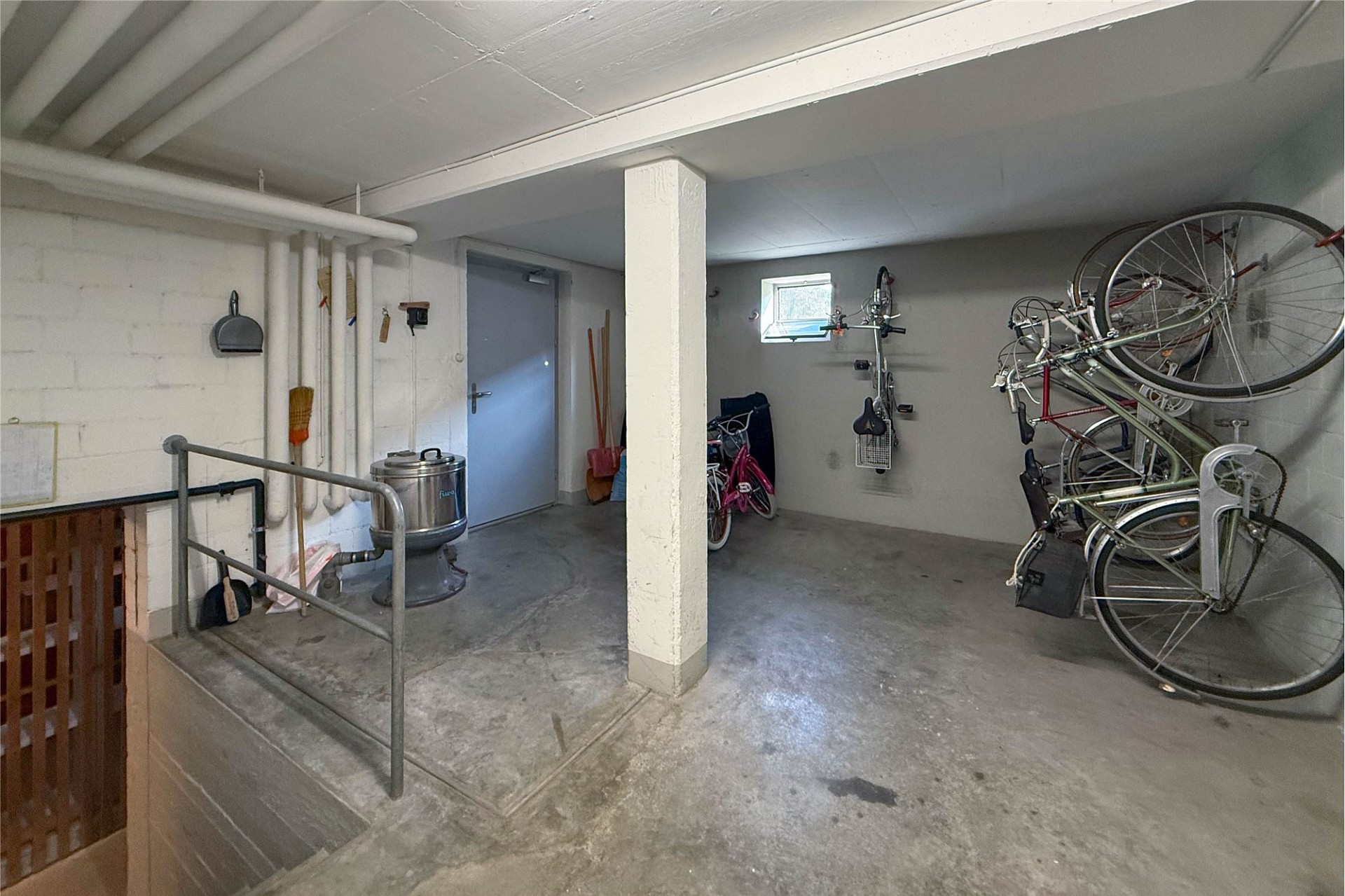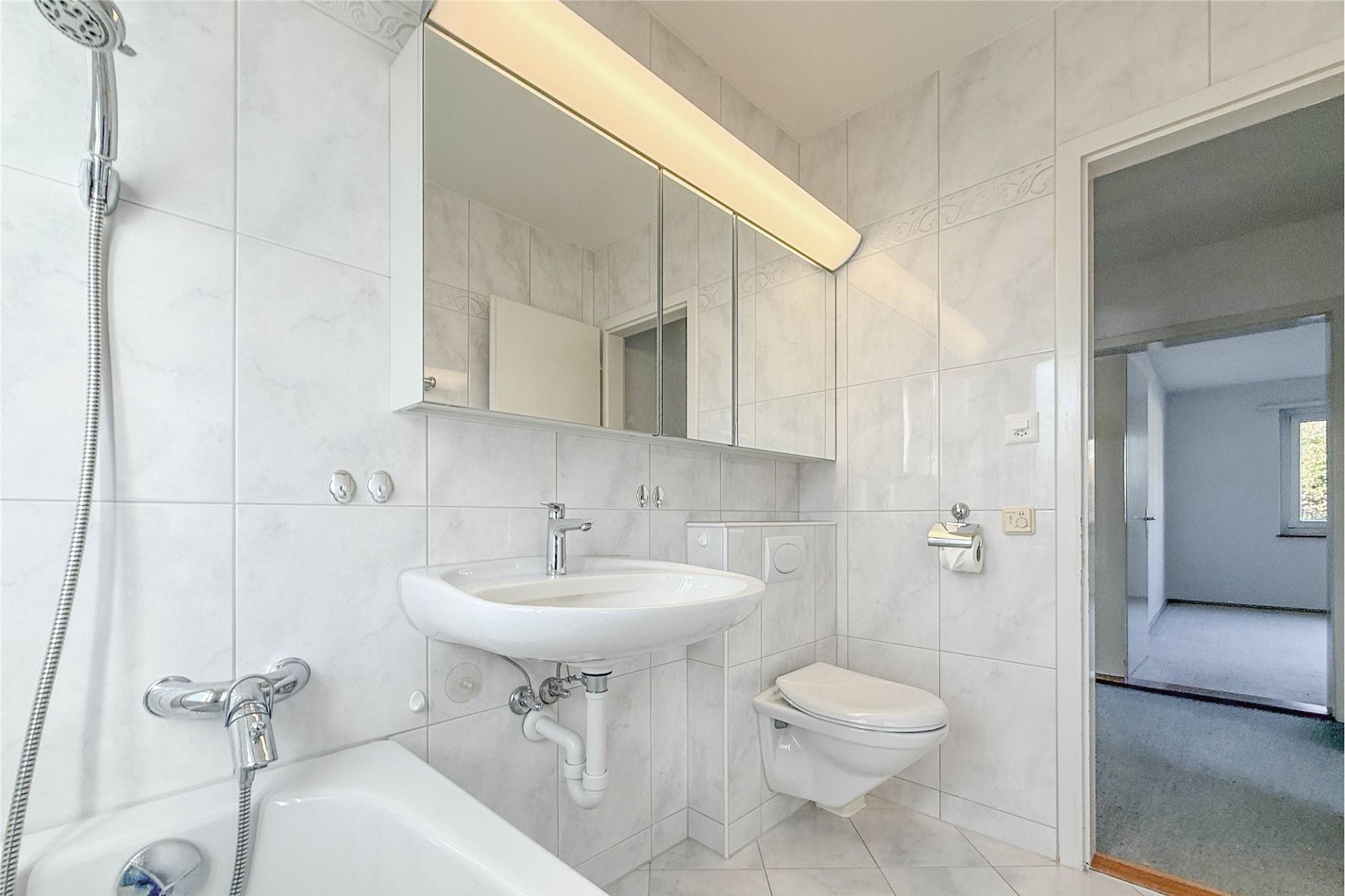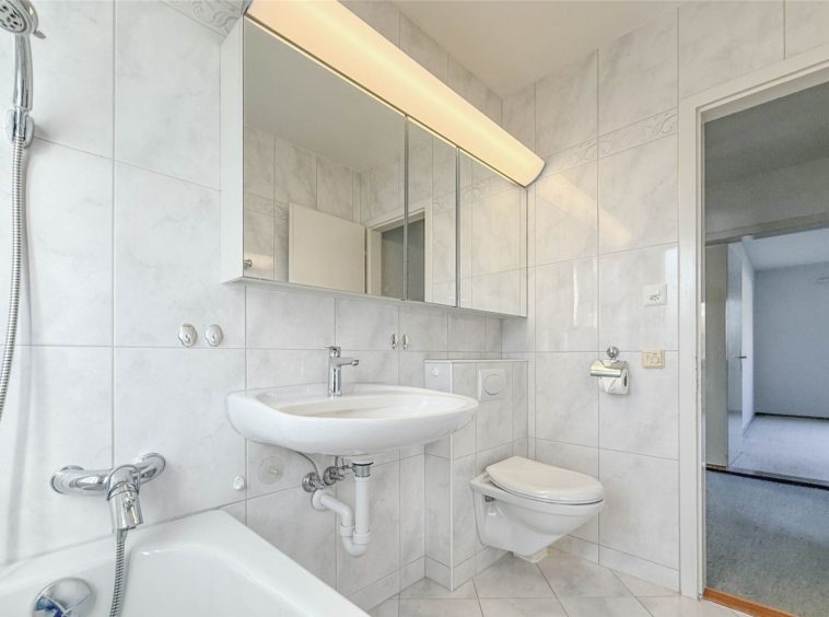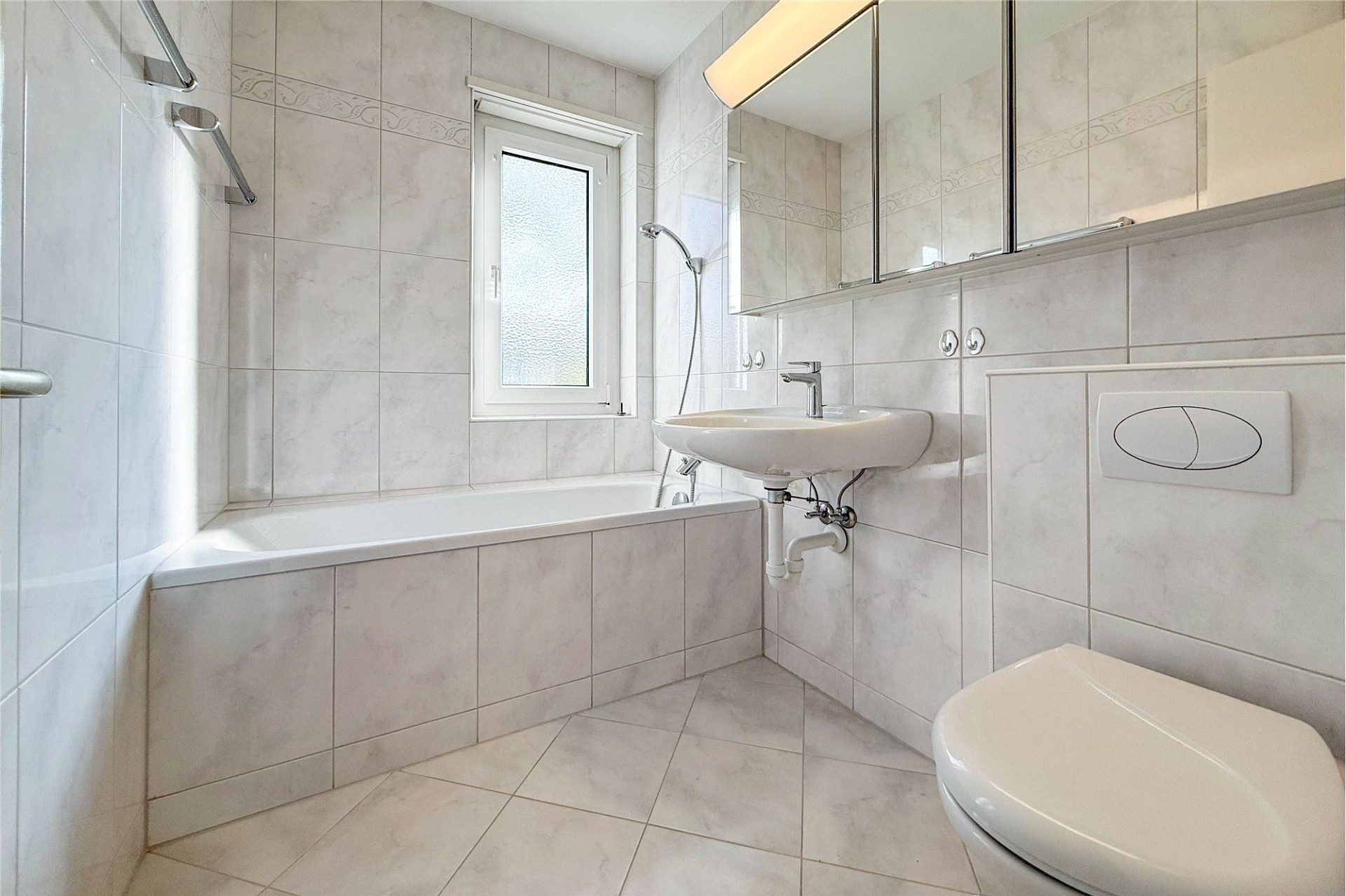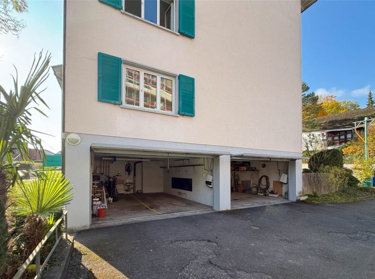 Der Einbauschrank für Ihre Putzutensilien befindet sich im Gang neben dem funktional gestalteten Badezimmer mit WC. Eine angenehme Bodenheizung sorgt in allen Räumen für wohlige Wärme.Praktisch präsentieren sich die Nebenräume – im Dachgeschoss steht Ihnen ein grosser Estrich zur Verfügung, während im Untergeschoss ein Keller zusätzlichen Stauraum bietet. Die Liegenschaft wird über eine gemeinsame Gasheizung (zwei Blöcke) versorgt. Zwei Waschmaschinen, zwei Tumbler und zwei Trocknungsräume stehen Ihnen in den allgemeinen Räumen zur Verfügung. Ebenfalls befindet sich dort der Fahrradraum. Ein besonderes Plus ist der zur Wohnung gehörende Parkplatz in der Doppelgarage.
